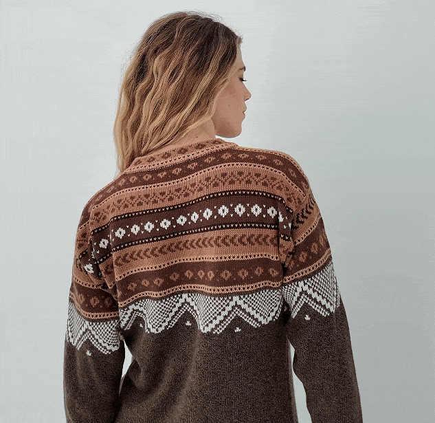 Unser Pullover besteht aus zertifizierter Alpaka-Softwolle, die nicht nur unglaublich weich ist, sondern dich auch zuverlässig warm hält. Alpaka-Wolle ist besonders leicht, atmungsaktiv und isolierend – perfekt für kalte Wintertage. Genieß den Komfort und die Nachhaltigkeit dieser hochwertigen Naturfaser!